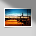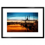 Der Rostocker Stadthafen mit Sonnenuntergang Kunst- und Fotodruck mit Passepartout