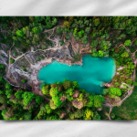 Enthält 19% MwSt.Kostenloser VersandKristallklarer, türkisfarbener See im Wald – Naturidylle aus der Vogelperspektive.