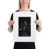 Das Poster ist auf hochwertigem, matten Papier gedruckt und mit einem Halbhartholz-Erlenrahmen umrandet.