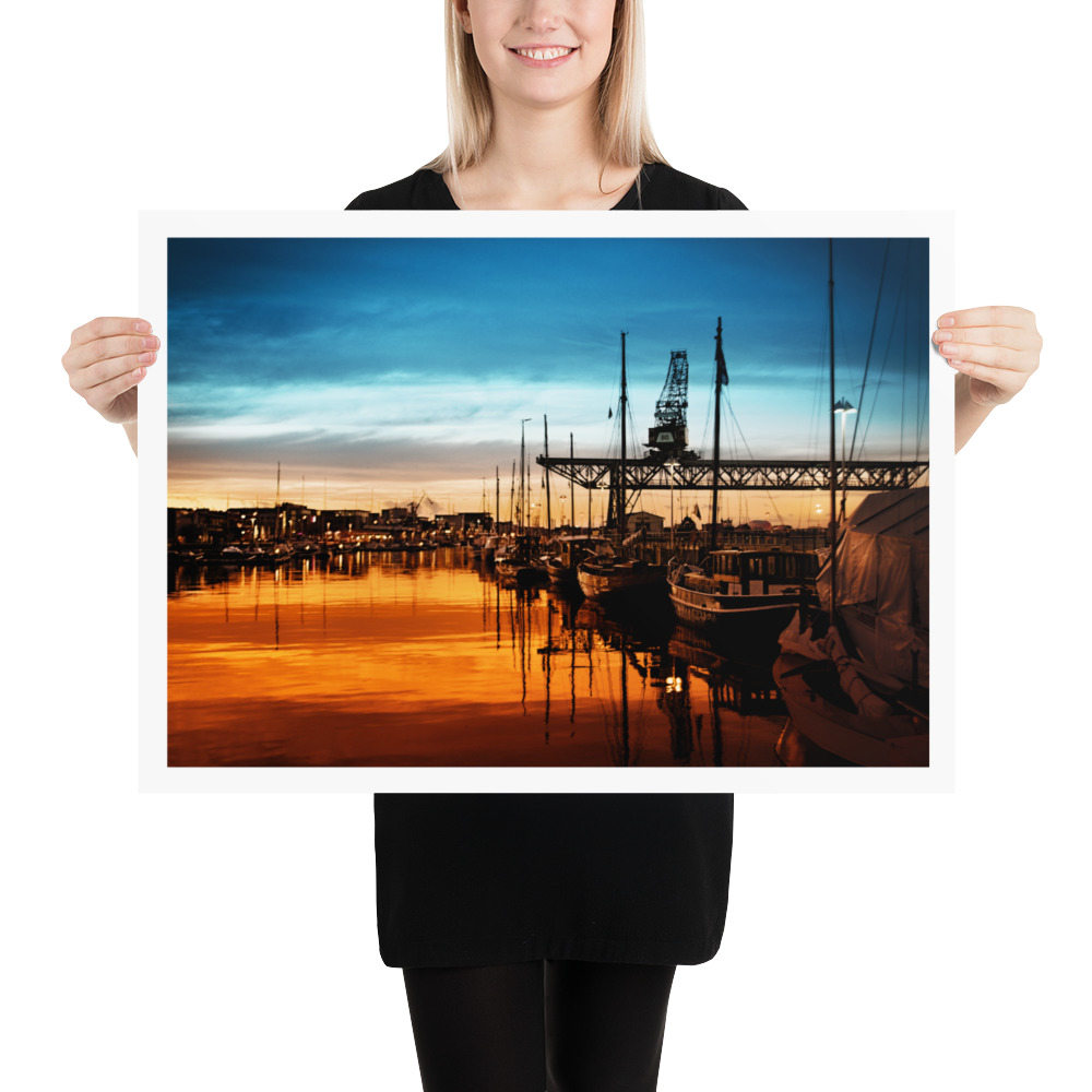 Der Rostocker Stadthafen mit Sonnenuntergang Kunst- und Fotodruck