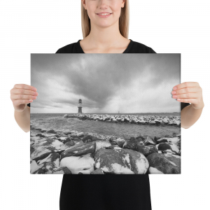 Molenfeuer Rostock Warnemünde s/w im Winter auf Leinwand