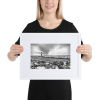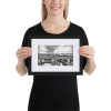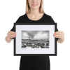 Das Poster ist auf hochwertigem, matten Papier gedruckt und mit einem Halbhartholz-Erlenrahmen umrandet.